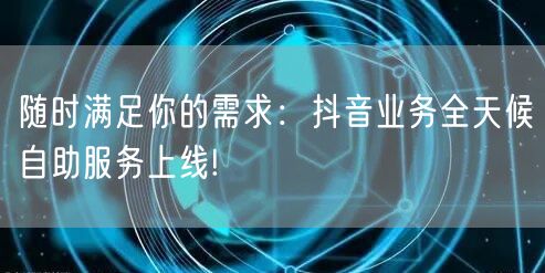 随着移动互联网的快速发展,用户对抖音业务的需求日益增长。为了满足用户的期望,抖音业务不断推陈出新,致力于提供更加优质的服务。全天候自助服务的推出,正是基于对用户需求的深入了解和持续创新的结果。