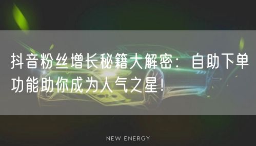通过本文的解析,相信你已经对抖音粉丝增长有了更深入的了解。掌握自助下单功能的助力,制定有效的增长策略,你也能轻松成为抖音人气之星!