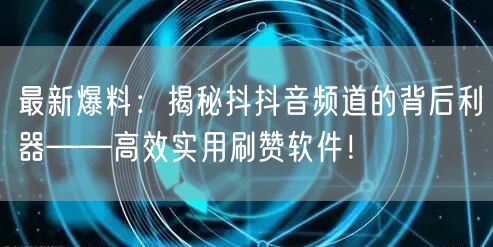 最新爆料:揭秘抖抖音频道的背后利器——高效实用刷赞软件!