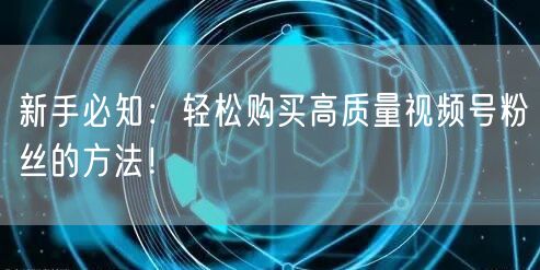 对于新手来说,想要在视频领域快速获得关注和影响力,粉丝数量是一个重要的指标。而如何轻松购买高质量的视频号粉丝,则成为了许多新手关注的问题。本文将为大家介绍一些实用的方法和技巧,帮助大家快速增加视频号粉丝。