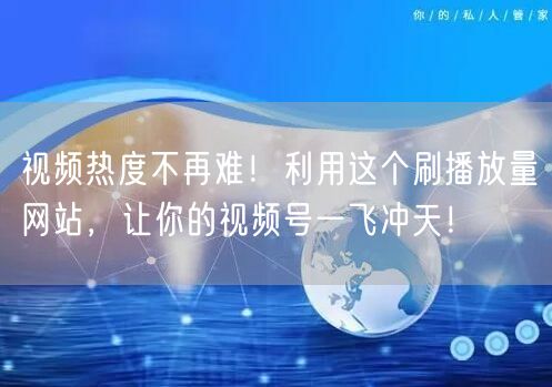 通过利用专业的刷播放量网站,结合优质内容和合理的推广策略,你的视频号将轻松实现一飞冲天!赶快行动起来,让你的视频热度不再难!