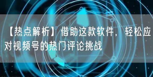 针对以上问题,我们推荐一款专业的软件——XX软件。这款软件具备强大的评论解析功能,能帮助运营者轻松应对视频号的热门评论挑战。