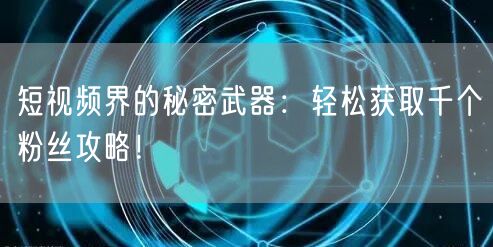 在这个信息爆炸的时代,短视频已成为大众获取信息的重要途径。想要在这个竞争激烈的短视频界脱颖而出,获取千个粉丝不再是遥不可及的梦想。本文将为你揭秘短视频界的秘密武器,带你走进轻松获取粉丝的世界!