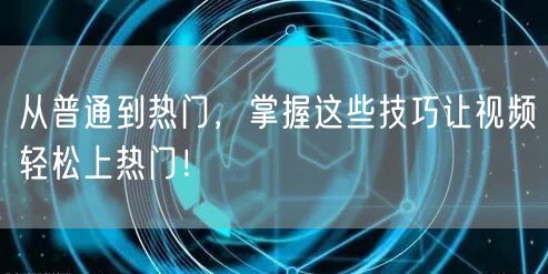 从普通到热门,掌握这些技巧让视频轻松上热门!
