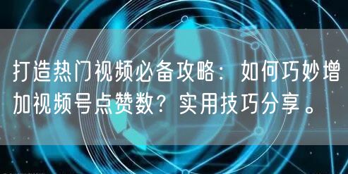 随着互联网的普及,越来越多的人加入到视频创作的行列中,如何让自己的视频在众多作品中脱颖而出,获得更多关注和点赞,成为每个视频创作者关注的焦点。本文将为您分享打造热门视频的必备攻略,帮助您巧妙增加视频号的点赞数。
