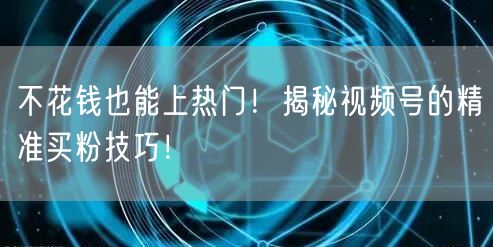 不花钱也能上热门!揭秘视频号的精准买粉技巧!