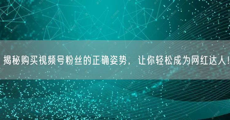 揭秘购买视频号粉丝的正确姿势,让你轻松成为网红达人!