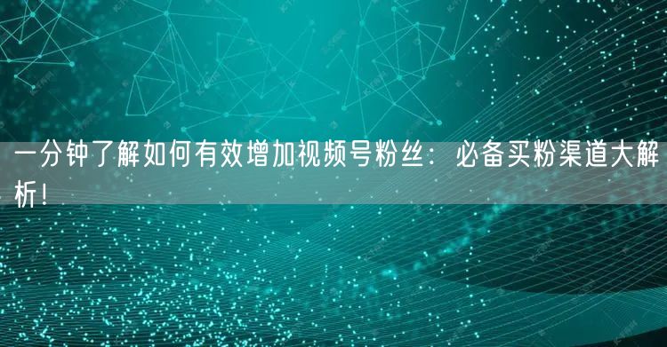 通过本文的解析,相信您对如何有效增加视频号粉丝已经有了更深入的了解。在实际操作中,创作者可以根据自身情况选择合适的买粉渠道和方法,快速提升视频号的关注度。希望本文能为您的视频号发展带来帮助和启示!