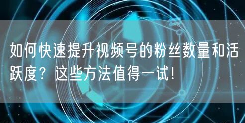 如何快速提升视频号的粉丝数量和活跃度?这些方法值得一试!