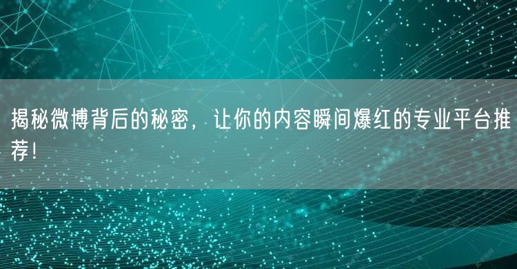 揭秘微博背后的秘密,让你的内容瞬间爆红的专业平台推荐!