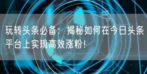 玩转头条必备:揭秘如何在今日头条平台上实现高效涨粉!