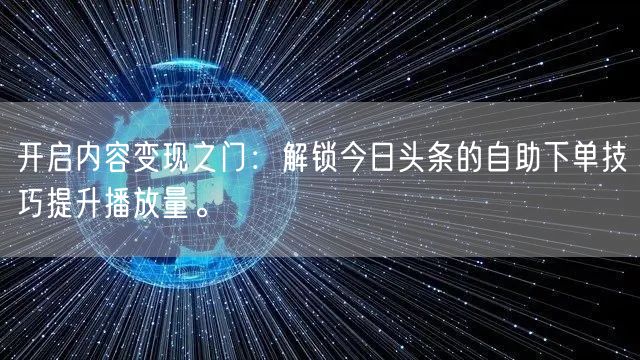 开启内容变现之门:解锁今日头条的自助下单技巧提升播放量。